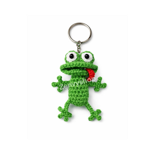 Este simpático llavero de lagarto tejido a mano es una pieza artesanal única, realizada cuidadosamente en crochet con gran atención al detalle. Su diseño divertido y expresivo, con ojos grandes y lengua roja, lo convierte en un accesorio alegre y lleno de personalidad.